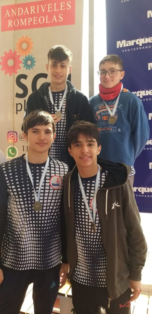 4×50 combinado varones: 3°) Poletti-Di Nardo-Benitez-Hermoso 2’56”07 (menor), 1°) Viegas-Hillkirk-Zapata-Álvarez 2’10”40 (cadete) y 2°) Russignan-Larronde-Perez-Borba Bertero 2’11”85 (mayor).